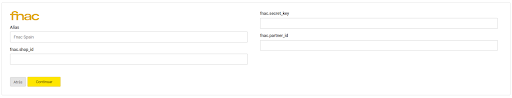 A continuación, le serán requeridos los siguientes datos: ID SHOP, Fnac secret Key y Fnac partner ID.