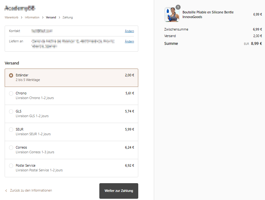 Die in der App ausgewählten Transportunternehmen werden in Ihrem Shopify-Shop wie folgt angezeigt.