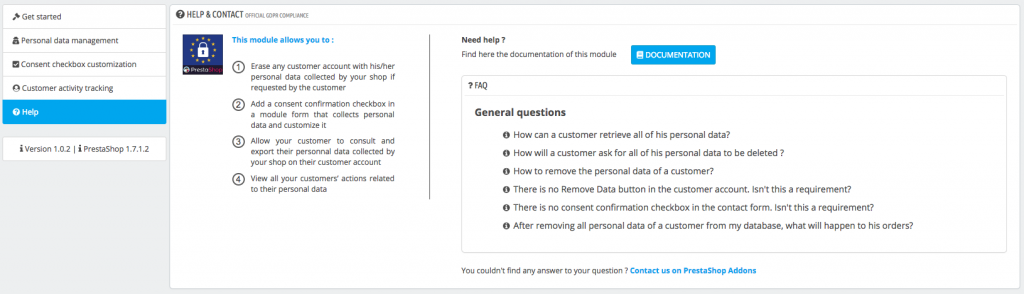 2. Innerhalb des Moduls finden Sie im Bereich Get Started die Dokumentation zum GDPR-Gesetz.