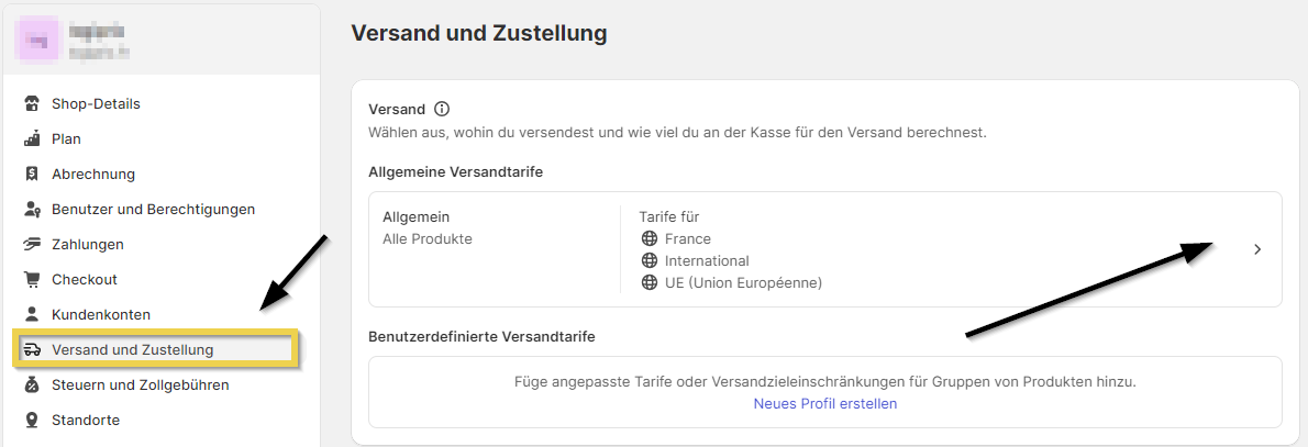 - Gehen Sie in Ihrem Shopify-Dashboard zu Einstellungen > Versand & Lieferung.