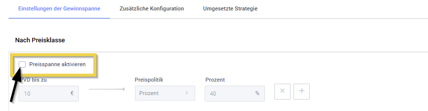 Bitte beachten Sie, dass, wenn Sie die Option “Preisspanne aktivieren,, nicht aktivieren, der von BigBuy empfohlene Verkaufspreis (UVP) angewendet wird, wie der Preis in der gleichen Weise in der letzten Gewinnspanne angewendet wird.