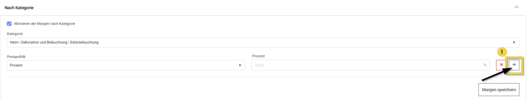 Sie können auswählen, auf welche Kategorie der letzten Ebene (Sub-Kategorie) ein anderer Gewinnprozentsatz als die Bereichs-Preisregel angewendet werden soll.