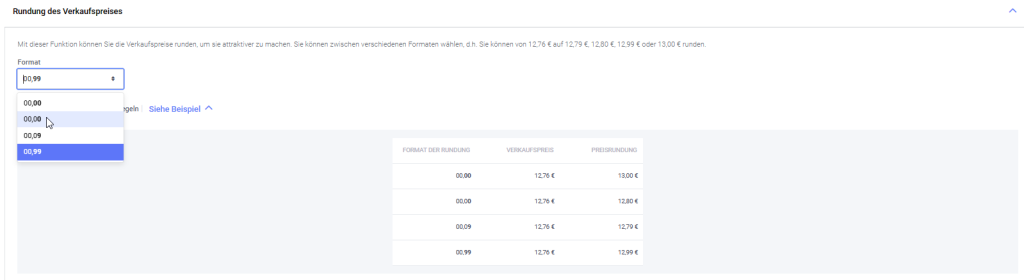 Rundung ist eine automatische Option, die die Preise rundet, um sie optisch attraktiver zu machen..