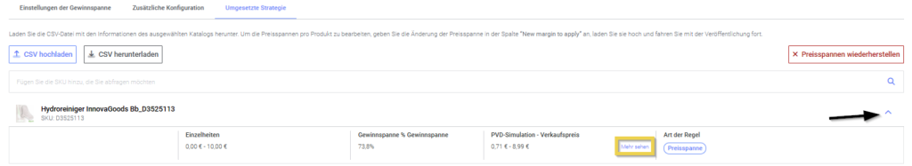 Wenn Sie die CSV-Datei herunterladen, können Sie den nach der festgelegten Strategie berechneten Verkaufspreis einsehen.