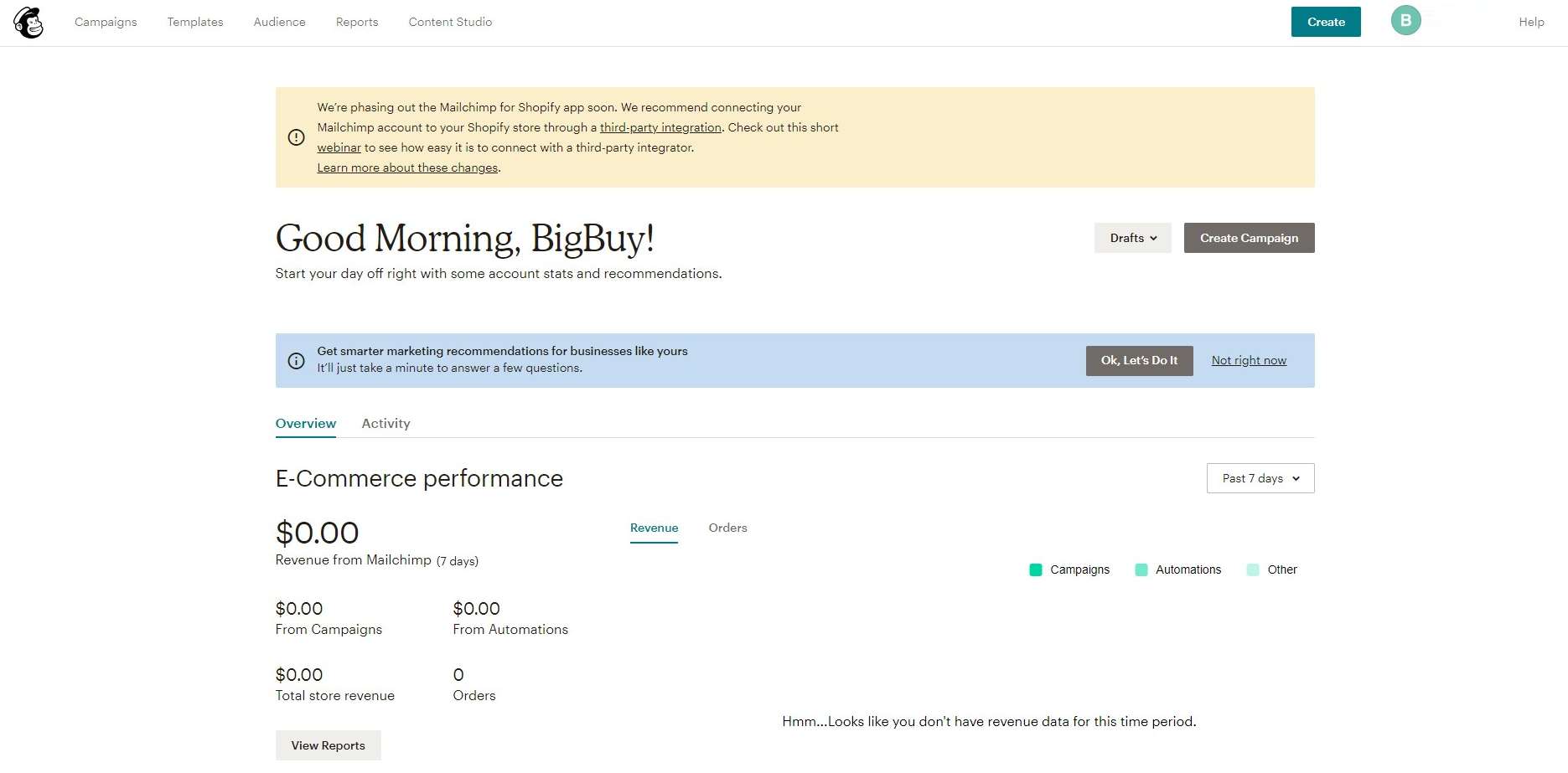 Zuerst müssen Sie ein Konto für Mailchimp erstellen. Erstellen Sie es von der Mailchimp-Seite aus und dann haben Sie mit Ihrem Benutzernamen und Ihrem Passwort Zugang zu Ihrem Konto.