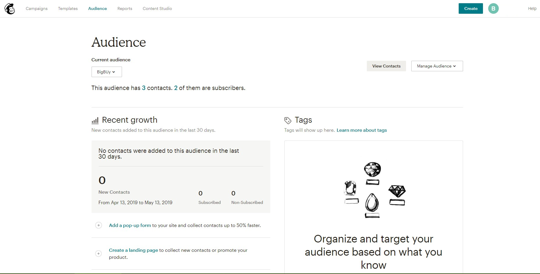 Gehen Sie als nächstes in den Bereich “Audience”, im oberen Menü. In diesem Abschnitt müssen Sie eine neue Zielgruppenliste erstellen. Anschließend erscheint ein Bildschirm wie der folgende.