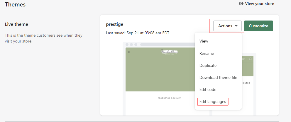 - Klicken Sie beim aktiven Thema auf Actions > Edit languages