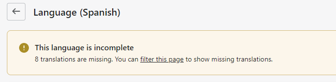 - Es ist möglich, dass es beim gewählten Thema nicht alle Teile in Übersetzung gibt, dann sehen Sie eine Nachricht wie die folgende. Klicken Sie auf filter this page.