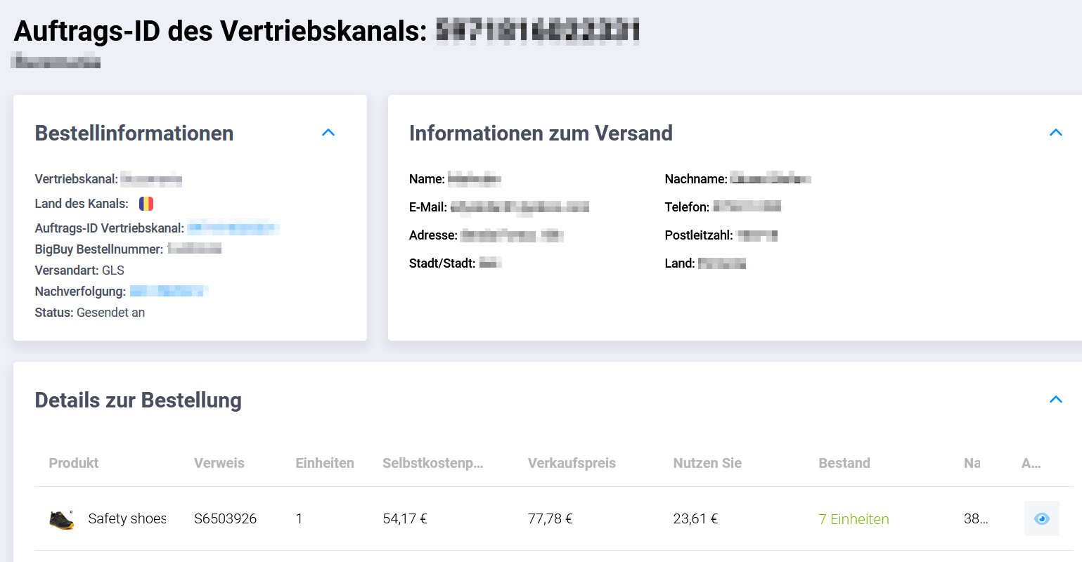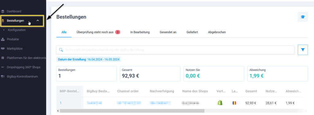 Wenn Sie Ihren Shop mit der Multi Channel Integration Platform (MIP) verbinden, ganz egal, ob es sich dabei um den Dropshipping-Shop 360º handelt, der von BigBuy entwickelt wurde oder um einen anderen Shop, der an MIP angeschlossen ist, erfolgt eine Synchronisierung der Aufträge im MIP.