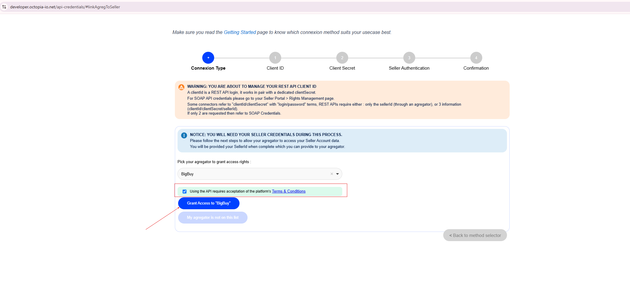 A summary of the delegation will be displayed with the BigBuy identifier.