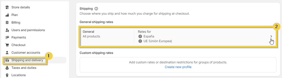 - On the other hand, if you prefer different shipping rates for specific products, you can create additional custom shipping profiles.