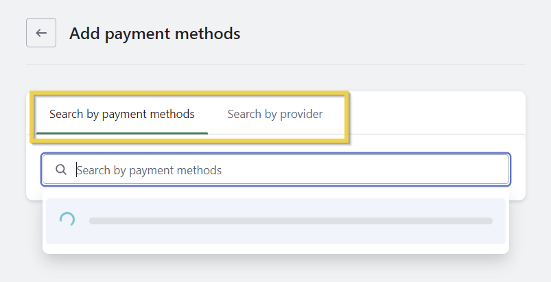 You can add other payment methods by searching for type of payment or provider. To configure a new payment method in the store, click on Add payment methods and choose the most suitable one for you.