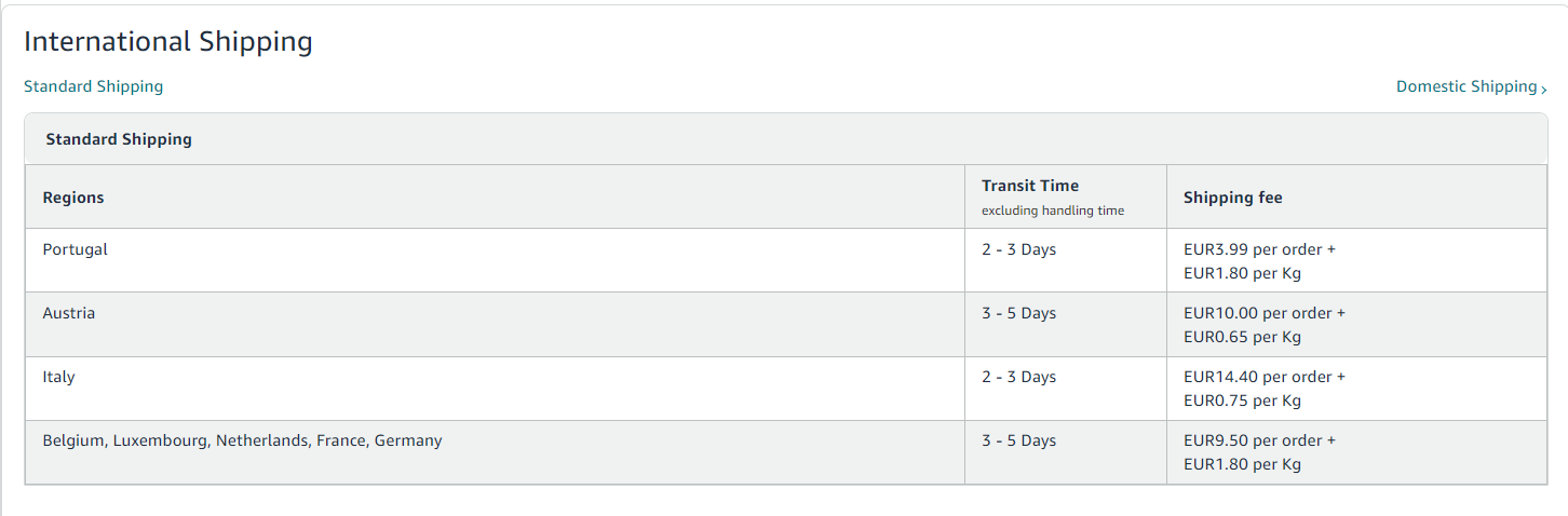 - Set up templates with 0€ shipping rates in the Shipping Settings section on Amazon.