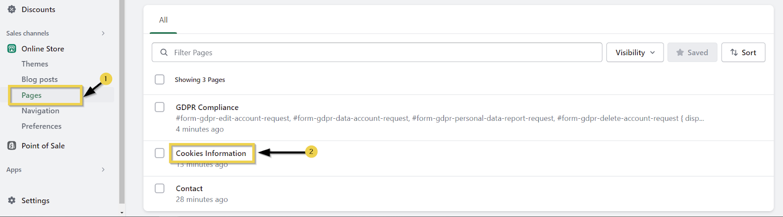 To agree with the information about cookies, you must return to the Online Shop and access the Pages area > Cookie information: