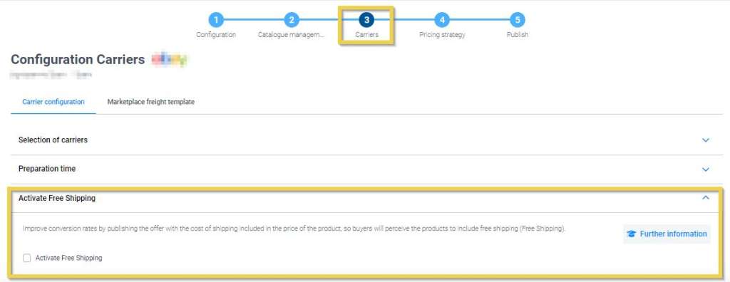 For any other marketplace, you will have to perform the same actions, configure free shipping from your marketplace before activating the option on Multi-Channel Integration Platform.