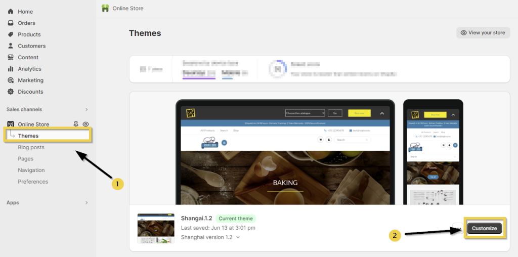 Go to the store’s control panel and click on the Personalise button in the active theme in your store.