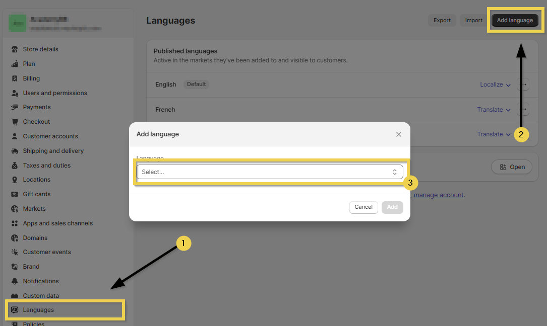 1.1 Add languages on Shopify