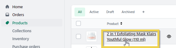 If you want to create tags for products in Shopify, go to Products and select one to open its details.