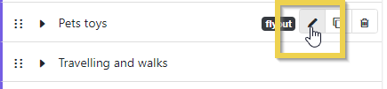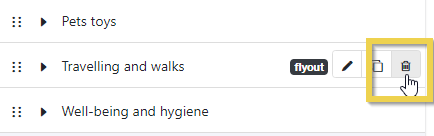 To delete an element from your store’s menu, simply position yourself over the element you want to delete. In the action buttons that appear on the right side of the element to be deleted, click on the trash bin button to remove this element from the menu.