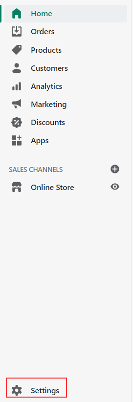 To check the domain that you currently have configured in your Shopify store and to change its configuration, access the “Settings” section located right at the bottom of the menu on the left.