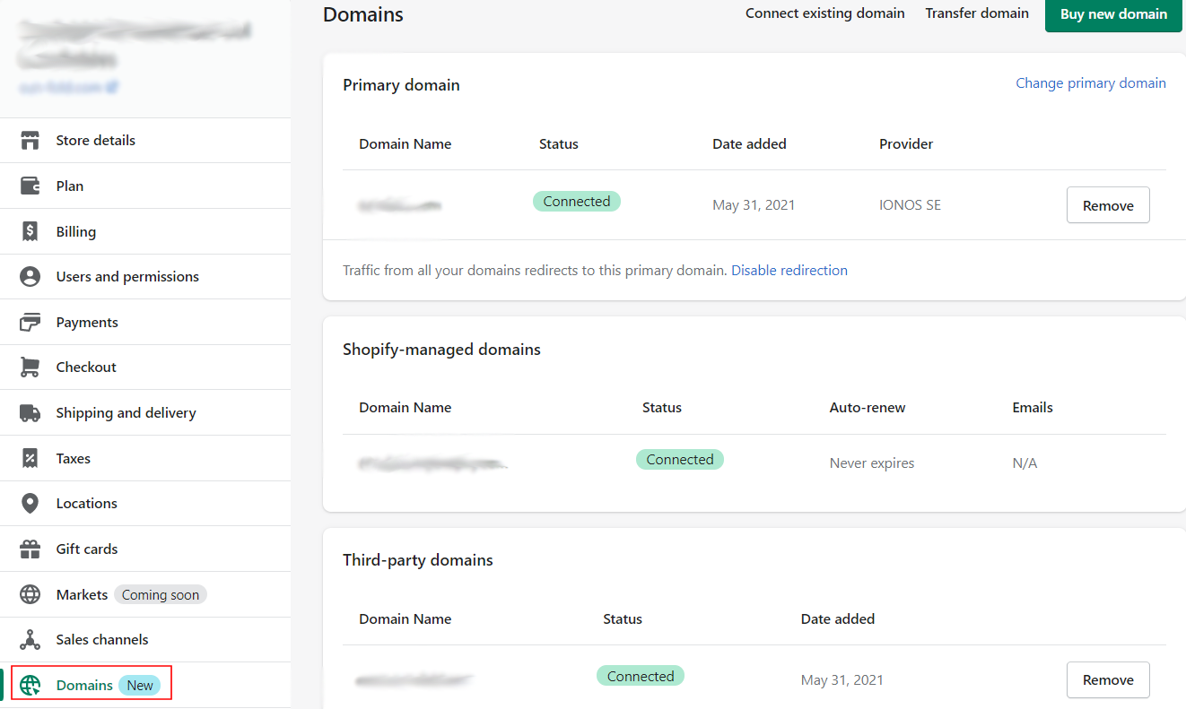 - Buying a new domain name from Shopify. Shopify allows its users to buy a domain name which will be managed and paid directly through Shopify. More information at: https://help.shopify.com/en/manual/domains/add-a-domain/buying-domains