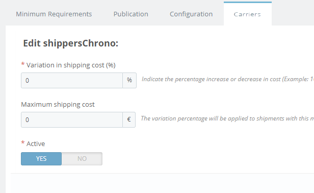 Please note that any changes you make to your costs will be automatically applied in your shop and the list of carriers will be updated whenever there are changes made by BigBuy.