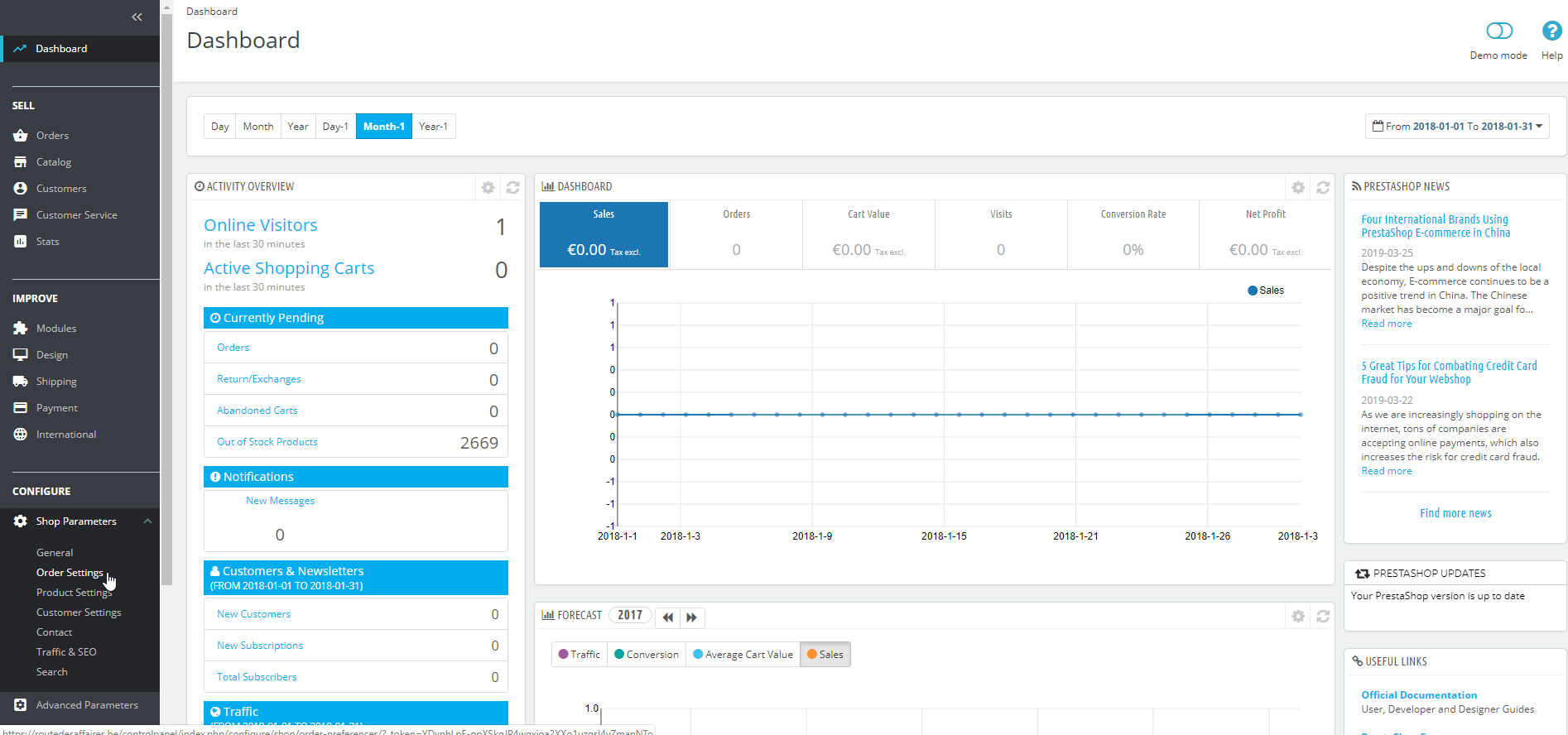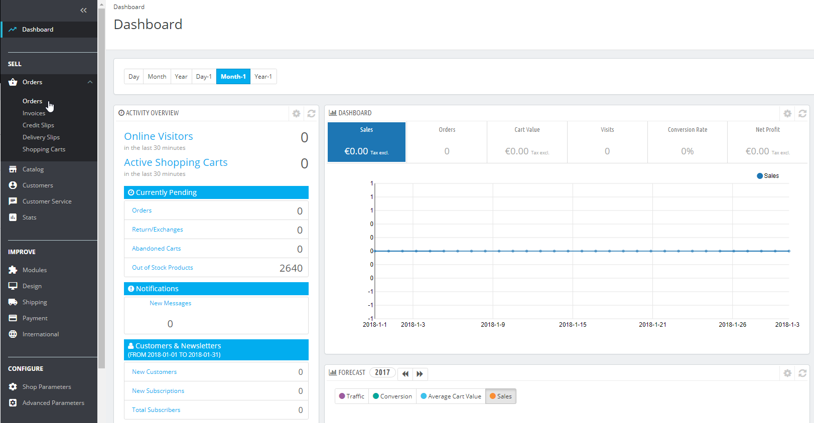 To access the invoice settings of your PrestaShop store, click on “Orders> Invoices”, which is located on the side menu of your control panel.