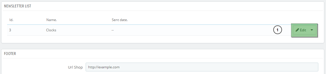 - Once the newsletter has been created press the “Edit” button (1).