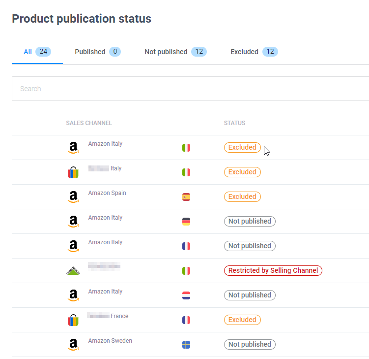 In channels with International Listing, products will always appear as “Unpublished.” In these cases, pay attention to the status they have in the active channel they are linked to. If they are published, carefully review the article on How to manage Amazon accounts with activated international listing through Multi-channel.