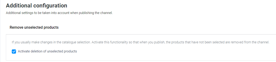 Not all sales channels allow the use of this tool, so if you can’t find it in the Additional Configuration area of your connector, ask the sales channel how to proceed: either by manually removing the products or waiting for them to disappear automatically.