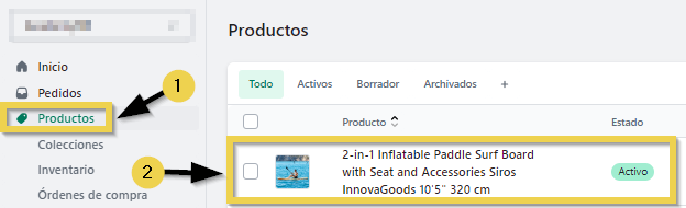 Para hacerlo, acceda a Productos en el menú lateral y abra el producto que desea agregar a una colección manual.