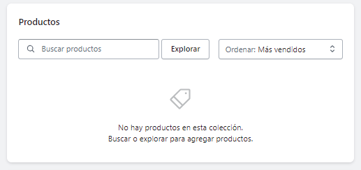 Si ha seleccionado crear una colección manual, podrá agregar productos específicos desde la sección Productos disponibles.