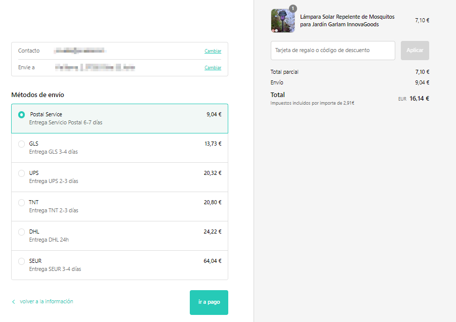 Los transportistas seleccionados en la App se mostrarán de la siguiente forma en su tienda Shopify.