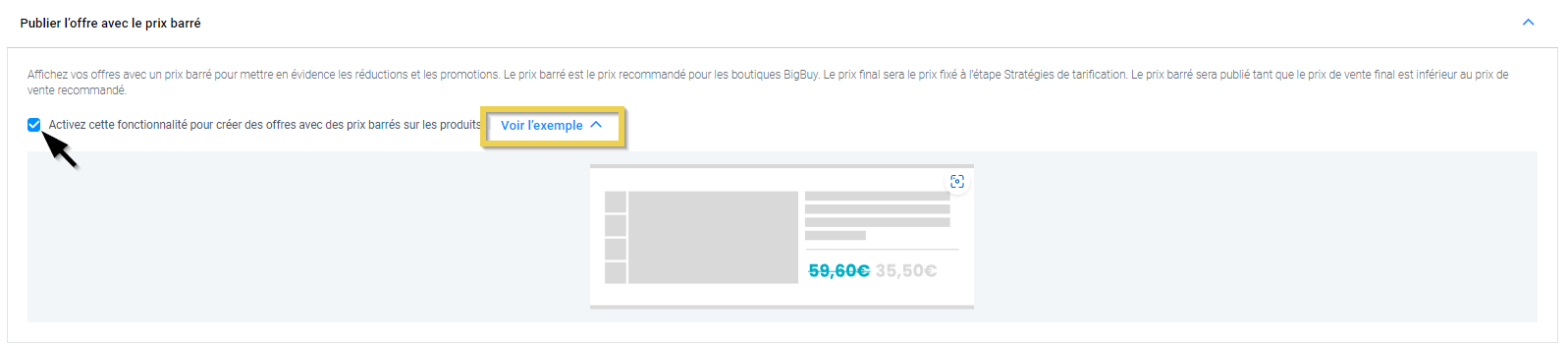 Si, au lieu de créer manuellement des offres dans la boutique, vous préférez que tous vos produits soient affichés dans votre boutique avec le prix barré, il existe une option dans notre Multi-channel Integration Platform (MIP) qui vous permet de le faire.