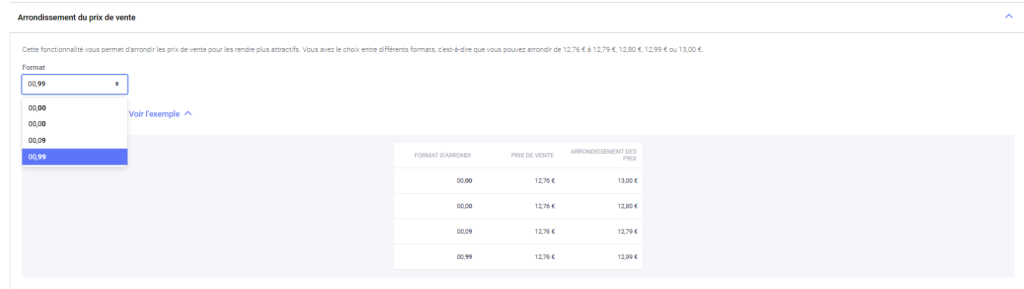 L’arrondi est une option automatique qui arrondit les prix pour les rendre plus attrayants visuellement.