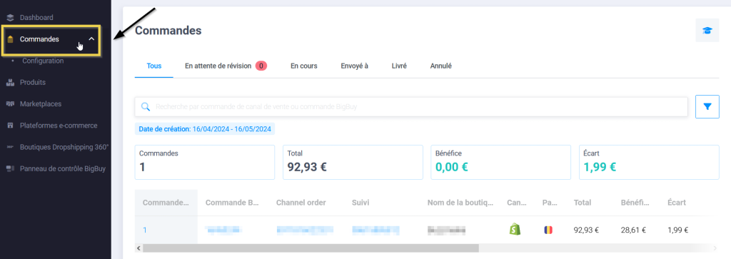 Lorsque vous connectez votre boutique à Multi-channel Integration Platform (MIP), que ce soit la Boutique Dropshipping 360º développée par BigBuy ou une boutique créée et connectée à MIP, la synchronisation des commandes sera intégrée dans MIP.
