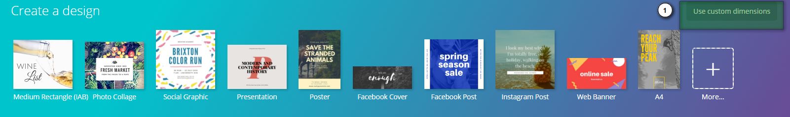 Ensuite, nous chercherons l’option « Use custom dimensions » de Canva.