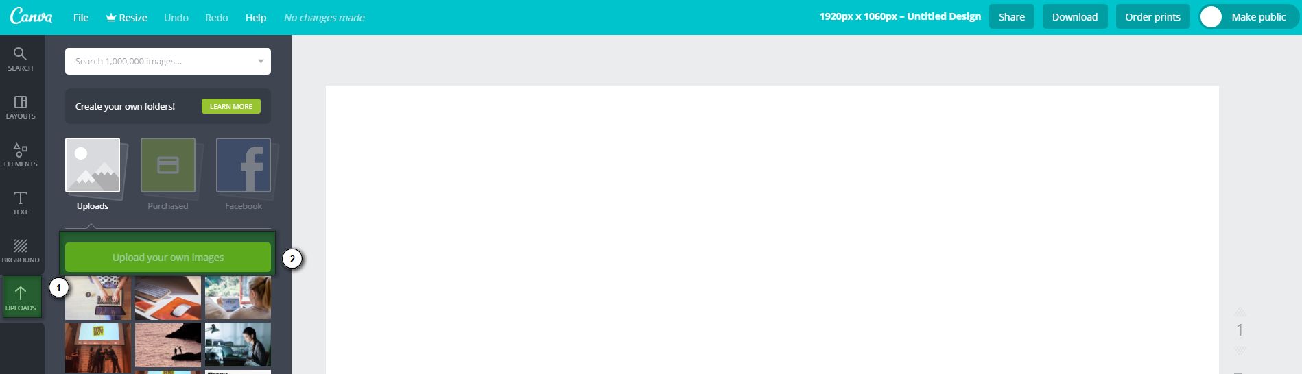 Si nous voulions, par exemple, ajouter notre logo, nous pourrions aussi le faire. Tout d’abord, nous devrions le télécharger sur Canva tout comme nous avons téléchargé l’image (depuis la section « Uploads »). Une fois que nous l’aurons, nous n’aurons plus qu’à la faire glisser sur la toile et modifier sa taille.