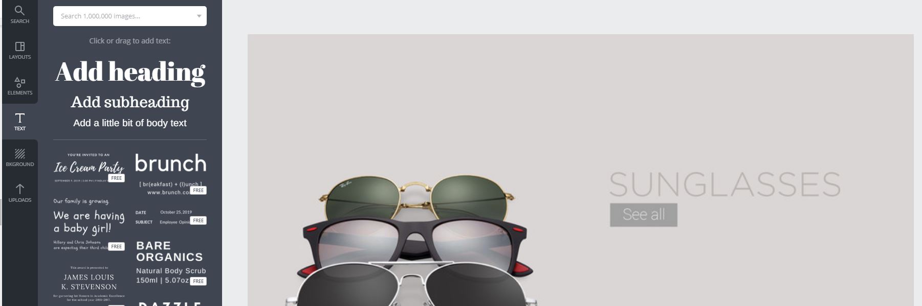 Une fois l’image disponible sur la toile, vous pourrez commencer à la modifier. Si vous voulez ajouter du texte, vous devrez aller à la section « Text » dans le menu à gauche, où vous verrez toutes sortes de tailles et de types de caractères déjà recommandés que vous pourrez facilement faire glisser et modifier.