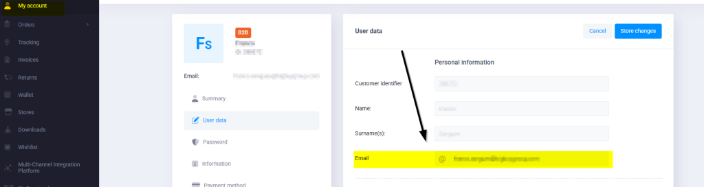 Para actualizar su correo electrónico, debe entrar en su panel de control: Mi cuenta > Datos de usuario> email :