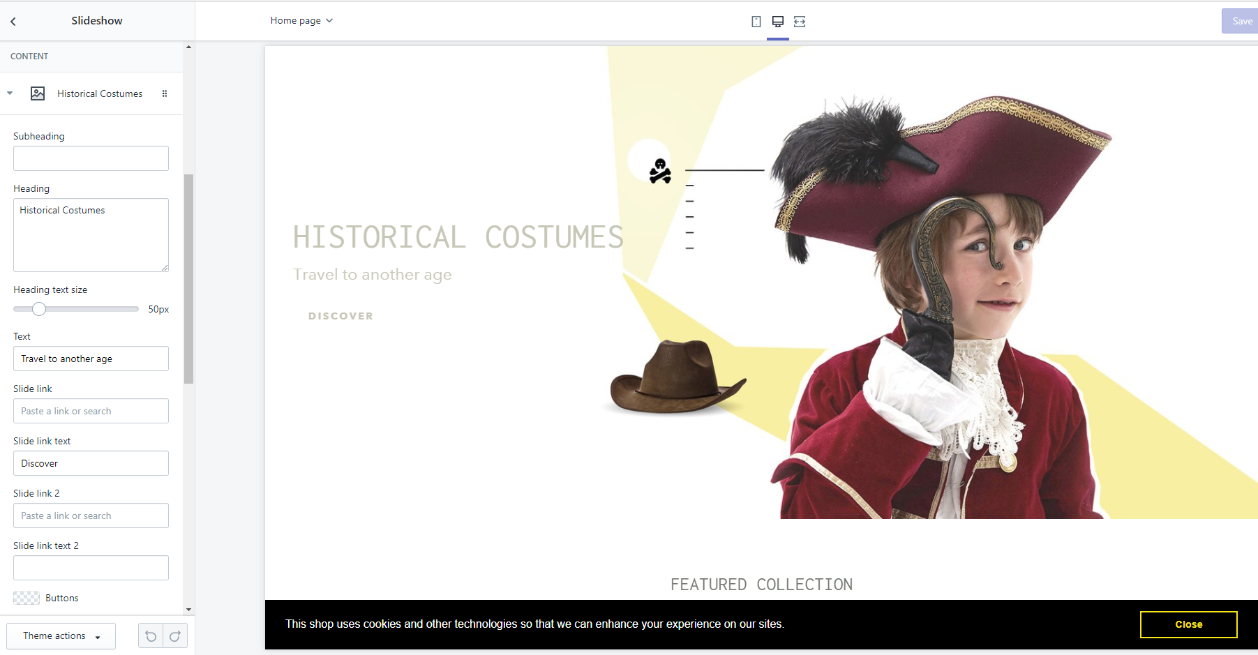 Di seguito, vi mostriamo alcuni esempi di come modificare il testo e il banner di una sezione del tema del negozio Shopify (Tema Praga).