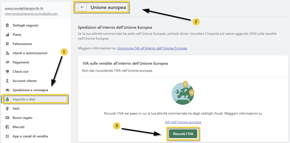 Nella sezione Impostare i vostri registri IVA di questo articolo di Shopify, avete maggiori informazioni su come completare ciascuna di queste opzioni.