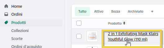 Se volete creare tag per i prodotti su Shopify, andare su Prodotti e selezionane uno per aprire la sua scheda.