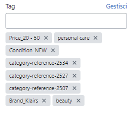 È possibile utilizzare questi tag per raggruppare i prodotti ed eseguire azioni di massa su di essi. Ad esempio, è possibile aggiungere il tag Estate a tutti i prodotti relativi a questo argomento, anche se nel nostro catalogo non fanno parte della stessa categoria.
