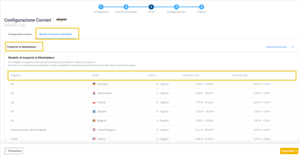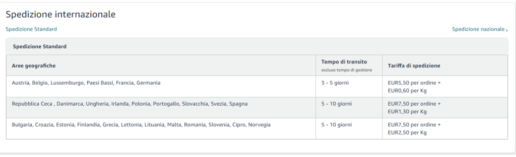 In questa sezione impareremo come impostare i costi di spedizione nel tuo account Amazon, tenendo presente la tabella dei corrieri che abbiamo esaminato sopra.