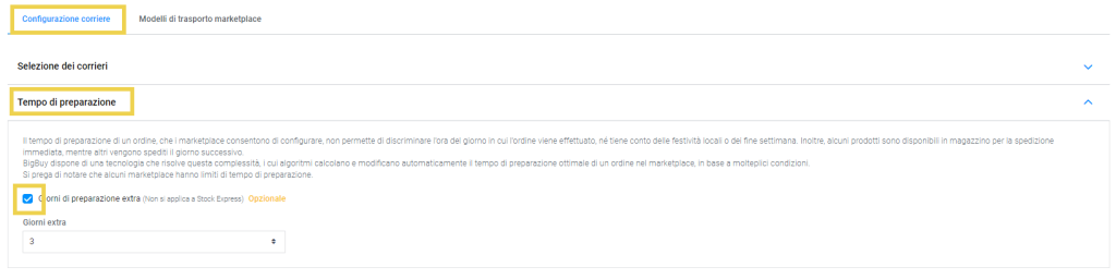 Tieni presente che alcuni marketplace hanno limiti di tempo di preparazione.