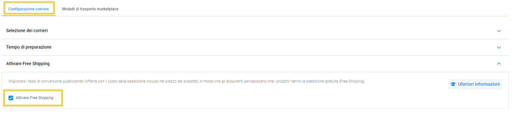 - Ricordarsi di abilitare la spedizione gratuita nel Marketplace prima di configurare la MIP.