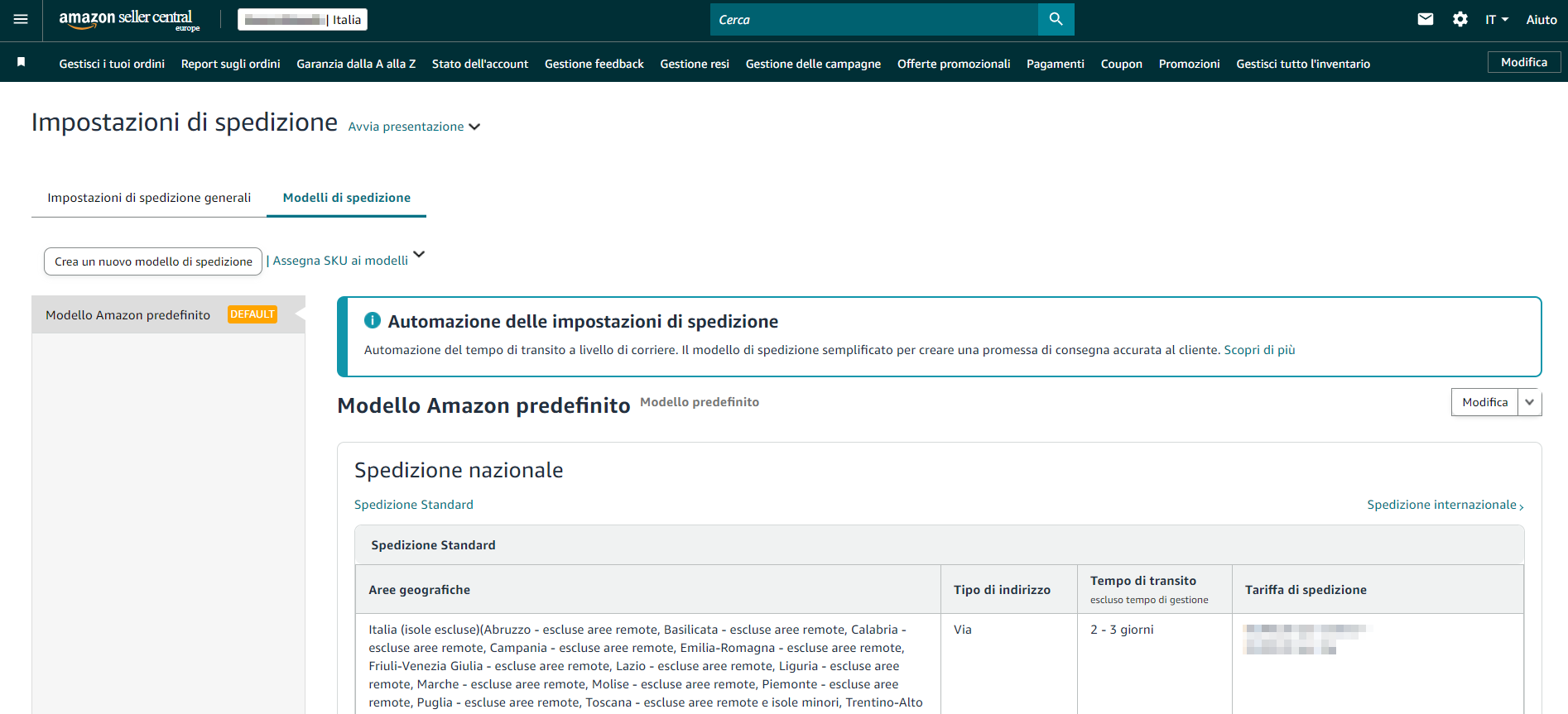 - Imposta i modelli con spedizione a € 0 nella sezione Impostazioni di spedizione Amazon.
