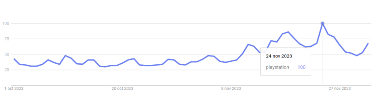 La categoria del gaming diventa una delle più popolari durante il Black Friday, attirando molti giocatori alla ricerca delle ultime console, videogiochi e accessori. Con offerte interessanti e una forte domanda, è una grande opportunità per incrementare le tue vendite nell’entusiasmante mondo dell’intrattenimento digitale. Molte marche di console di videogiochi approfittano di questo periodo per lanciare i loro prodotti, e gli utenti cercano di acquistarli a un prezzo più accessibile. Possiamo vedere che le ricerche per “PlayStation” sono aumentate notevolmente in tutto il mondo durante il Black Friday nel 2023.