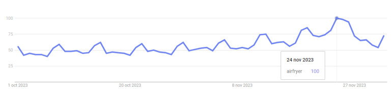 Un’altra delle categorie che registra un notevole aumento delle vendite durante il Black Friday è quella dei Piccoli Elettrodomestici. I consumatori approfittano delle offerte di questo periodo per rinnovare o acquistare elettrodomestici essenziali per la casa, come macchine da caffè, tostapane, frullatori, aspirapolvere e molto altro. Questo tipo di prodotti, con grandi sconti, diventa un’ottima opportunità per aumentare le vendite e attirare coloro che cercano questo tipo di articoli pratici e funzionali. Gli utenti aumentano la ricerca di prodotti come le friggitrice ad aria, poiché possono trovarle a un prezzo migliore.